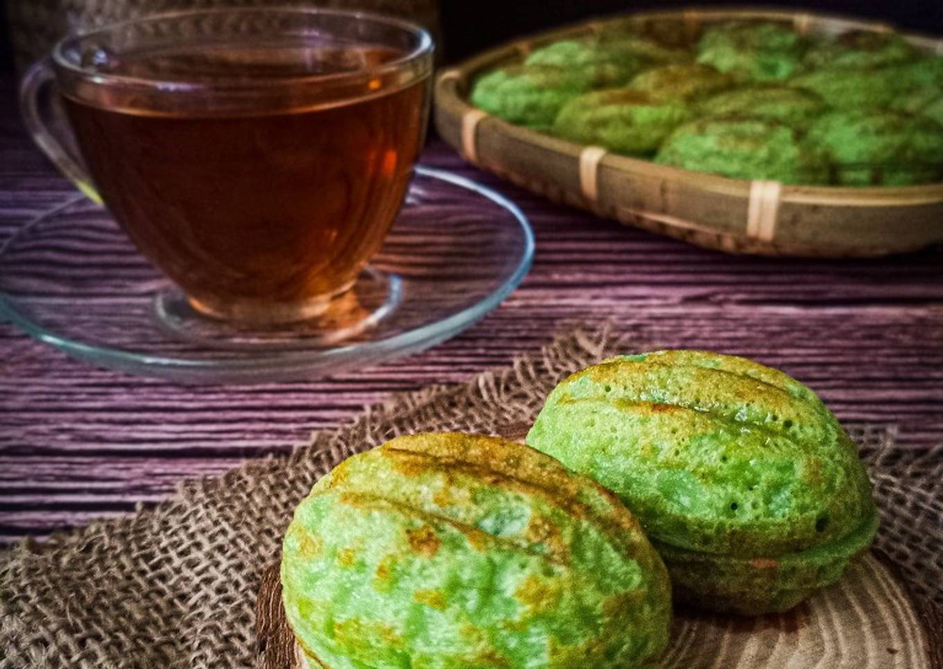 - ~ Combine flour, egg, coconut milk, pandan leaf water, salt and coloring. Mix well then strain the mixture.